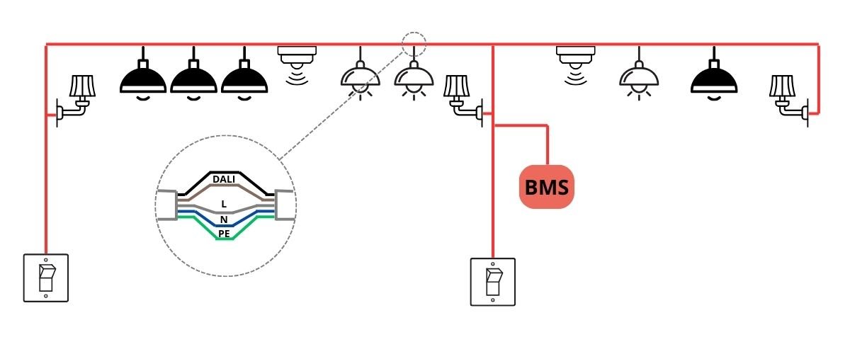 Ogólnoświatowy standard DALI to cyfrowy, przewodowy protokół komunikacyjny służący do precyzyjnego sterowania oświetleniem w budynkach. Pozwala na podłączenie do 64 urządzeń na jednej magistrali (lamp, nadajników, czujników) lub do 128 urządzeń (nowy standard DALI 2) gdzie do 64 to urządzenia wykonawcze (lampy) a 64 sterujące (czujniki i włączniki). Standardowa magistrala DALI to zwykły kabel elektryczny zasilający lampy i czujniki który posiada o dwie żyły więcej, np kabel 5-cio żyłowy.